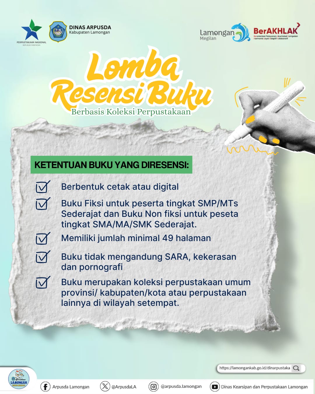 #LombaResensiDAKNF2026 #DinasARPUSDALamongan #GerakanIndonesiaMembaca #PerpustakaanNasional #PerpustakaanHadirDemiMartabatBangsa