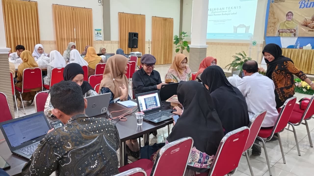 Lamongan - Bimbingan teknis kepenulisan berbasis konten budaya lokal merupakan pelatihan yang bertujuan untuk memperkenalkan dan mengajarkan cara menulis dengan mengangkat tema kekayaan budaya lokal daerah. Dinas Kearsipan dan Perpustakaan Daerah Kabupaten Lamongan menyelanggarakan kegiatan bimtek pada hari Selasa, 28 April 2028 bertempat di Aula Cendekia Lantai 2 Perpustakaan Daerah Lamongan.